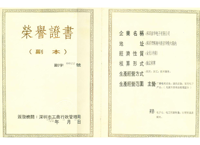 京華公司具備強大的自主創新能力和集成創新能力,獲得了 “廣東省智能電子工程技術研究中心”認定及“國家級高新技術企業”、海關“AEO”認證,擁有各類專利一千多項;多次榮獲“廣東省優秀企業”、“中心區最具影響力品牌”等榮譽,連續多年被評為“深圳500強企業”;獲得了“深圳市十大著名商標”和“廣東省著名商標”、“深圳知名品牌”等稱號。