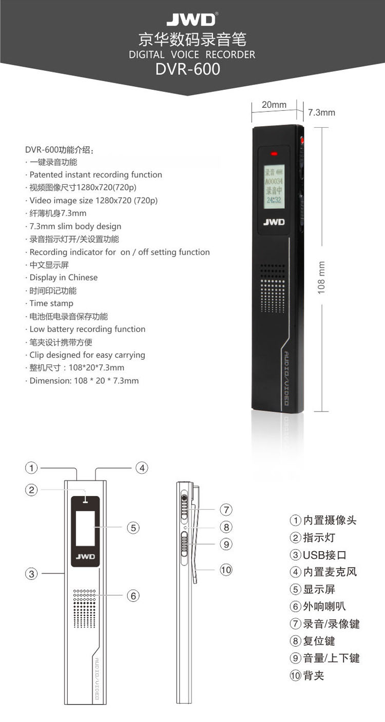 11.整機尺寸108*20*7.3mm