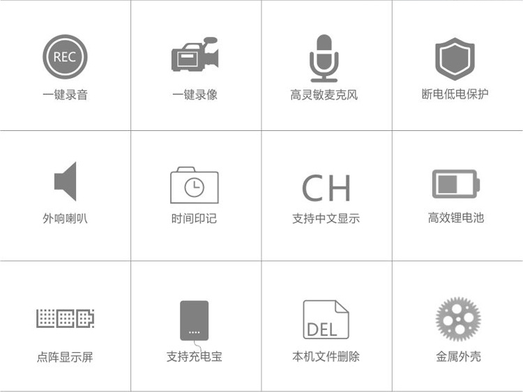 間錄音/錄像,可外接充電寶或者充電器工作)