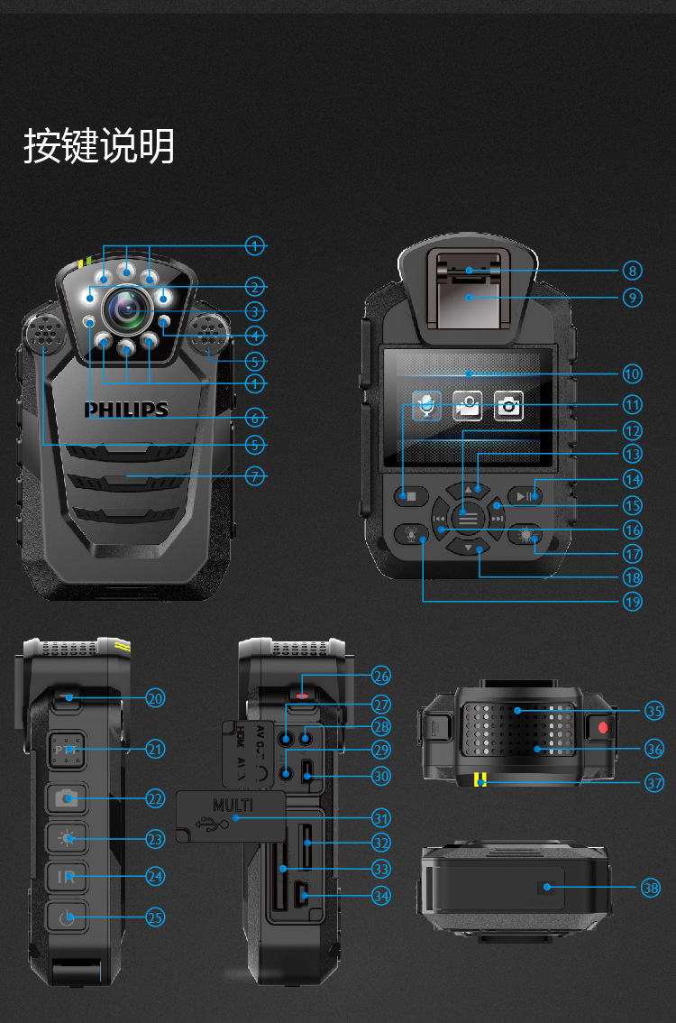 執法取證 便攜音視頻 執法記錄儀 1296P高清紅外廣角夜視攝像機 錄音 拍照一體機