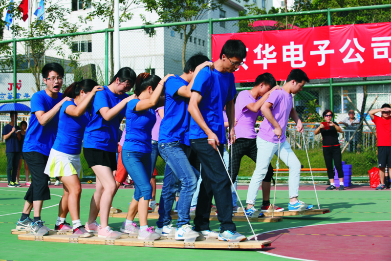 第一天的比賽項目有:風火輪、指壓墊跳繩、齊心協力、袋鼠跳接力賽、乒乓球和羽毛球。在集體項目上,運動員們心往一處想,勁往一處使,一鼓作氣,你追我趕,好不激烈!場下的觀眾大聲吶喊,為隊員們加油助威,掌聲、歡呼聲不絕于耳。場上運動員揮汗如雨,場下觀眾熱情洋溢,京華工業城呈現出一片火熱的氣氛。趣味運動會儼然成為一場歡樂的Party。
