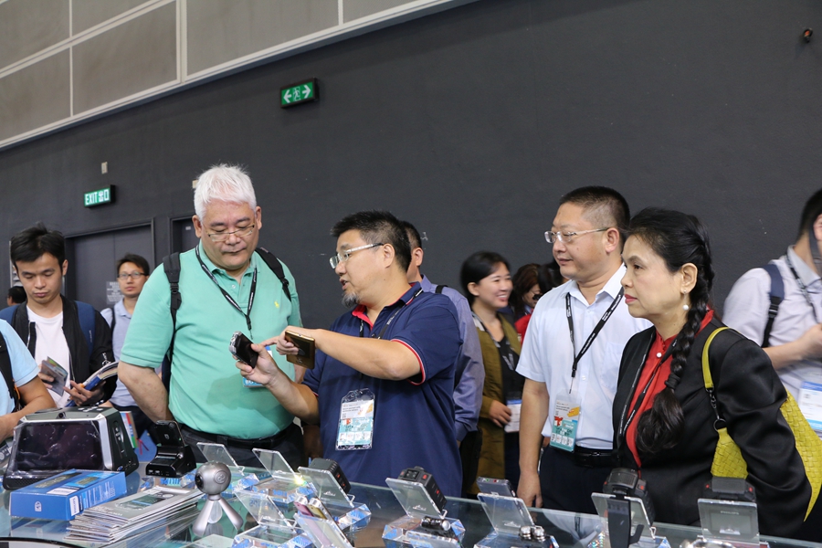 展會期間,在京華公司領導班子的陪同下,南京熊貓股份公司夏德傳總經理也來到了展位,認真聽取了京華信息公司潘光宇總經理的匯報,細心詢問了參展的產品情況,并對現場的工作人員做悉心指導和親切慰問。