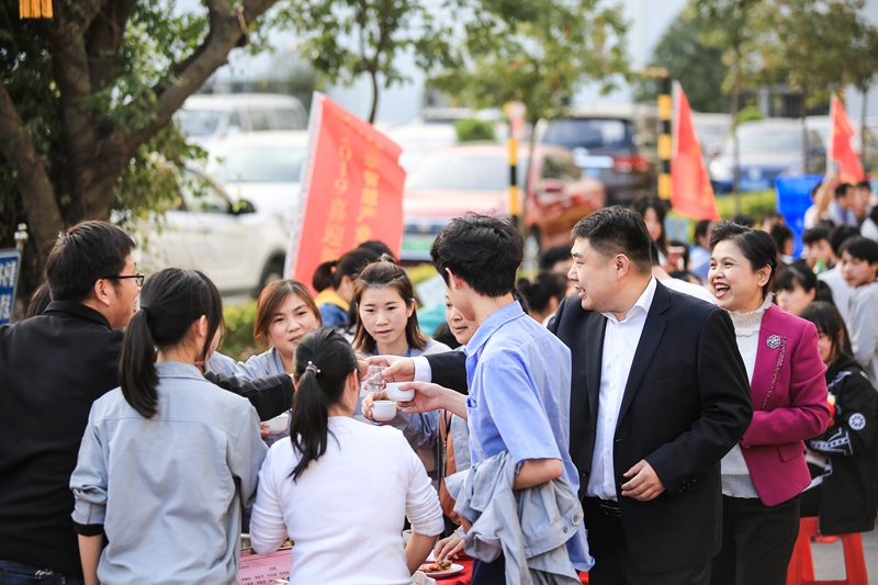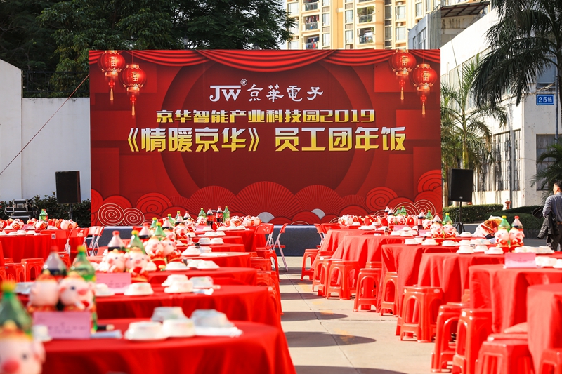 2019年1月11日下午,鳥語(yǔ)花香、陽(yáng)光明媚。京華智能產(chǎn)業(yè)科枝園區(qū)彩旗獵獵,燈籠高掛,處處張燈結(jié)彩,一副熱鬧非凡、美輪美奐的景象。遠(yuǎn)遠(yuǎn)望去,京華大道上綿延幾百米,整齊地排列著160張鋪著大紅臺(tái)布的餐桌,猶如幾條巨大無(wú)比的彩帶在京華科技園區(qū)飛舞,場(chǎng)面頗為壯觀。