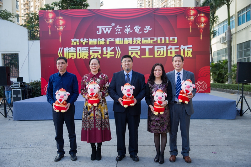 京華信息技術(shù)有限公司總經(jīng)理潘光宇先生上臺(tái)致詞。京華公司總經(jīng)理王國(guó)慶帶領(lǐng)公司領(lǐng)導(dǎo)班子成員走上舞臺(tái),集體向全體員工拜年祝酒。祝愿京華公司2019年諸事順利、豬圓玉潤(rùn)、欣欣向榮,祝所有員工朋友們工作順意、生活美滿、富貴團(tuán)圓!