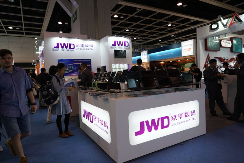 公司本次展出的產品除了JWD筆記本電腦、平板電腦、行車記錄儀、執法音頻記錄儀、智能手環、卡片相機等產品外,還有潔面儀、補水儀、美容面罩等美裝系列新品,品種繁多、應有盡有,和展館的布置相輔相成,前來咨詢、洽談的合作伙伴紛紛而來,一派門庭若市的景象。