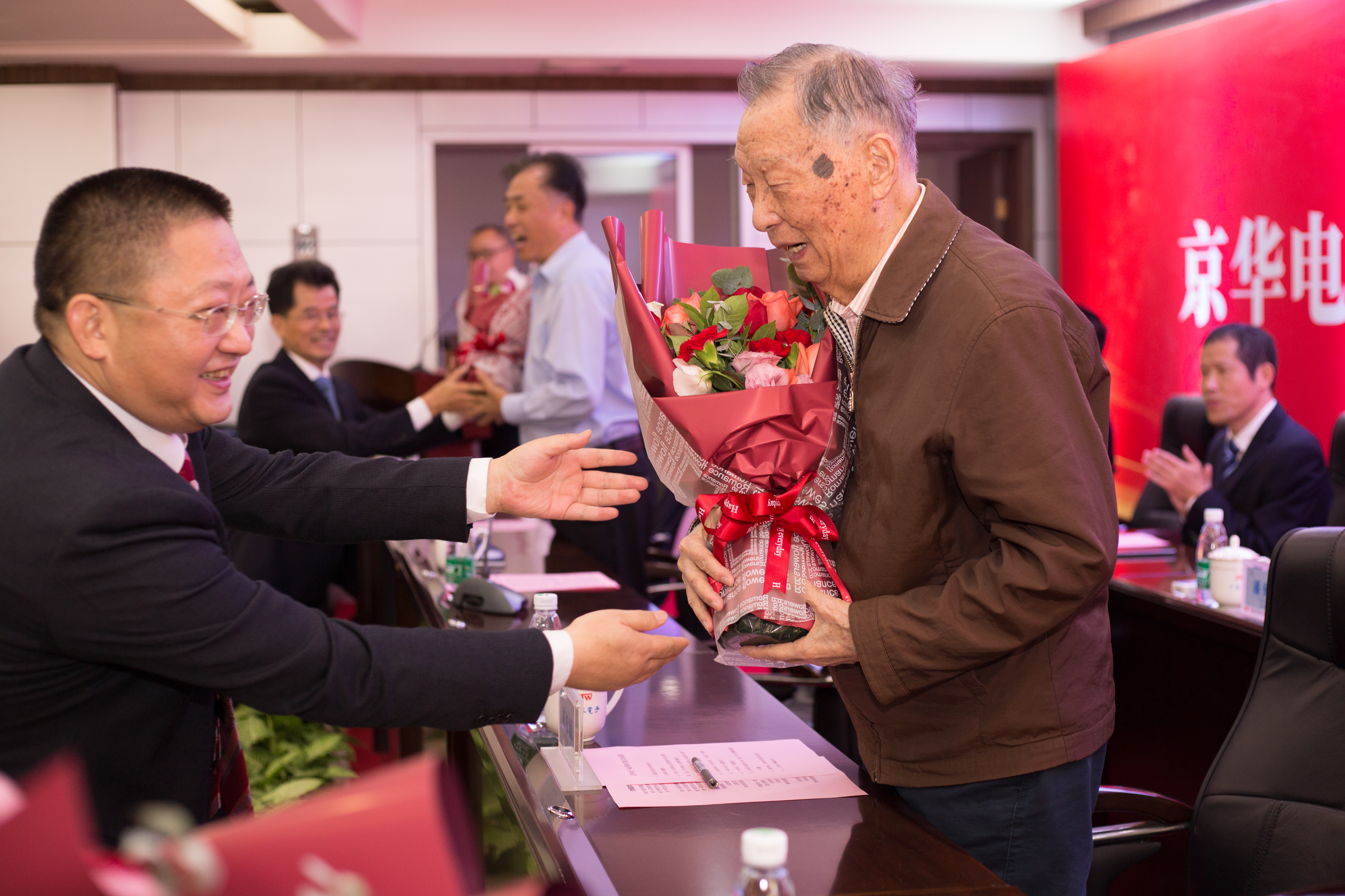 公司領導向老領導獻花