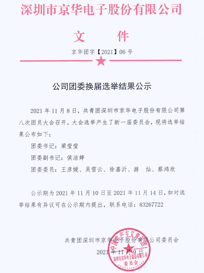 京華公司工會第十二屆委員會選舉結果的公示報告