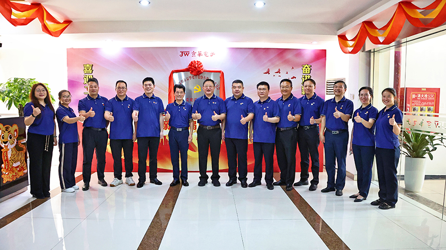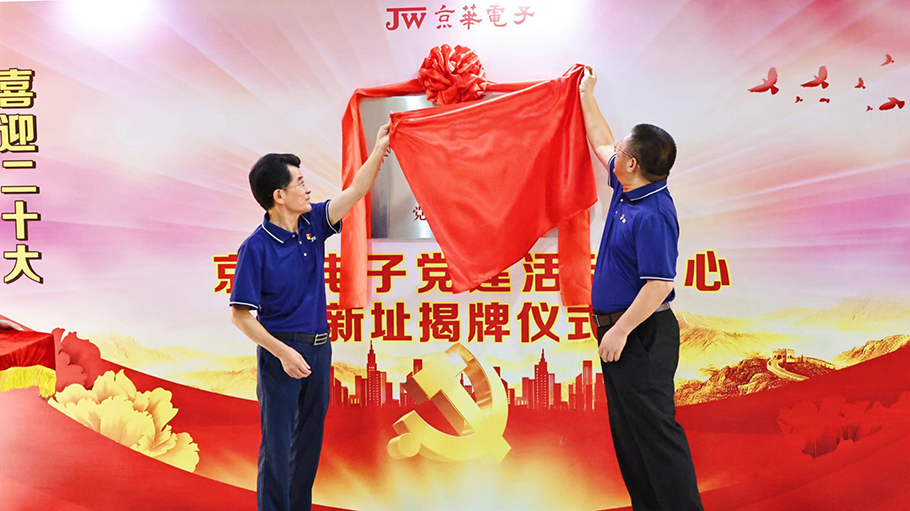 隨后,全體人員移步京華總部6樓舉行黨建活動中心新址揭牌儀式,黨委書記、總經理王國慶和黨委副書記、紀委書記羅云水共同揭牌,宣布黨建活動中心新址正式啟用。黨員活動中心新址的建立是公司喜迎黨的二十大系列活動之一,是加強黨組織陣地建設的重要舉措。活動中心設置了中國共產黨歷屆黨代會展示長廊、黨建主題文化墻、黨員活動室等功能區域,是面向黨員職工群眾開展傳播政治理論知識、提供黨員組織生活的場所。黨建活動中心的投入使用將進一步推動京華電子黨建文化和企業文化相結合,促進黨建帶群建、黨建聚人心。