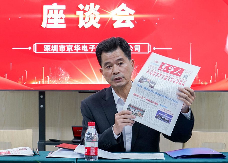 座談會上,羅云水作開場致辭。首先,他通報了《京華人》在2022年度深圳內(nèi)刊界總結(jié)表彰大會上榮獲的三項獎,分別是深圳市十優(yōu)企業(yè)報獎、“好版面”一等獎以及“好消息”二等獎,其中深圳市十優(yōu)企業(yè)報獎《京華人》已先后獲得12次。