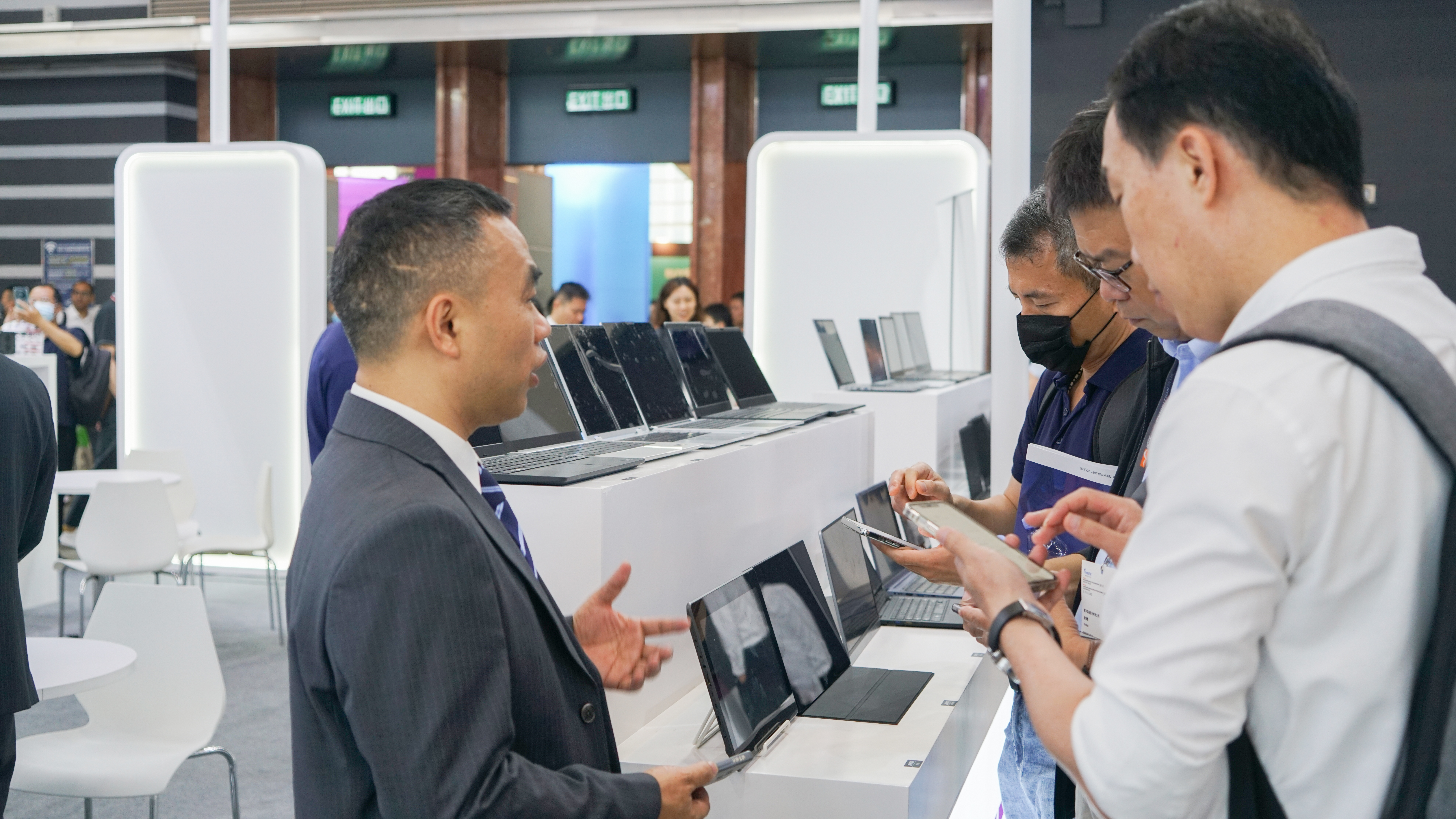 4月12日,香港春季電子產品展時隔三年在香港會展中心盛大開幕。京華公司副總經理林雪松帶領海外部同事攜多款最新消費電子產品參展,多維度展示公司在技術上的突破與創新。4月14日上午,公司黨委書記、總經理王國慶、副總經理滕立軍一行前往展會了解公司參展情況,為參展工作人員加油鼓勁。