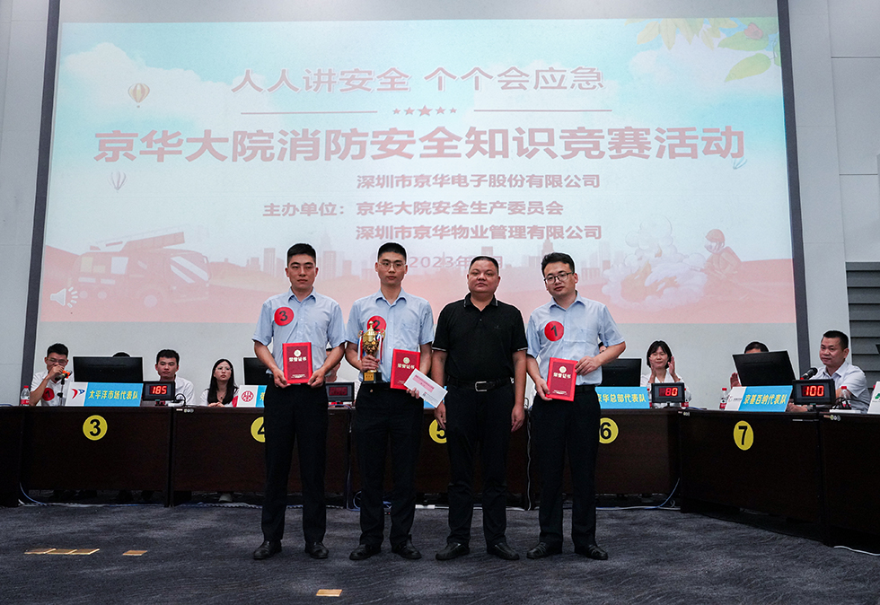為進一步掌握安全生產常識,增強消防安全意識,提高消防安全防范能力,認真貫徹落實2023年“安全生產月”活動,6月21日下午,京華公司、京華大院安全生產委員會,京華物業公司聯合舉辦消防安全知識競賽活動。京華公司黨委書記、總經理王國慶,京華公司副總經理、京華物業總經理滕立軍,安全生產辦公室成員和京華大院各參賽隊伍及其領導出席了本次活動。活動特邀評委深圳市福田區安委辦副主任、應急管理局副局長張志云,華強北街道應急辦副主任唐根華,華強北派出所副所長李斌,華強北派出所福強警區警長曾凱蒞臨現場指導。