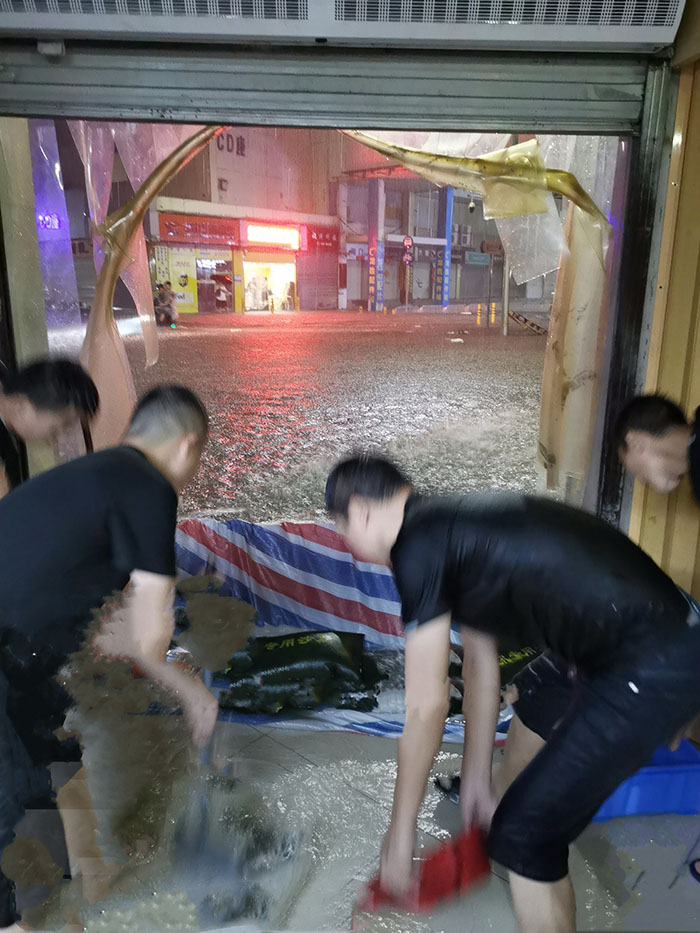7日傍晚,暴雨來勢洶洶,京華物業(yè)積極部署,組織人員迅速行動,內(nèi)澇積水處拉起防洪防汛安全警戒線,在門檻、電梯口處碼放防汛沙袋,排查安全隱患,確保人員力量到位、物資儲備到位、隱患排查到位,全副武裝迎戰(zhàn)極端強降雨;京佳物業(yè)迅速響應,“拉網(wǎng)式”“地毯式”開展辦公及產(chǎn)線區(qū)域安全隱患排查,重點關注電力設備、排水系統(tǒng)及應急疏散通道,竭力將風險隱患化解在源頭、消滅于萌芽。