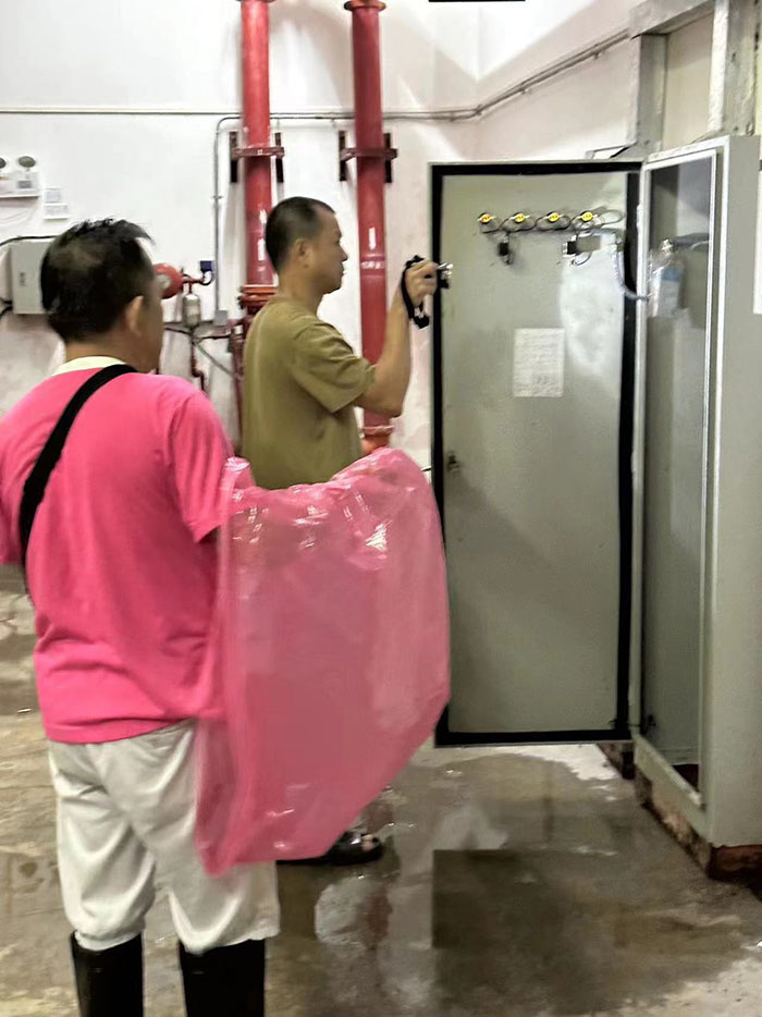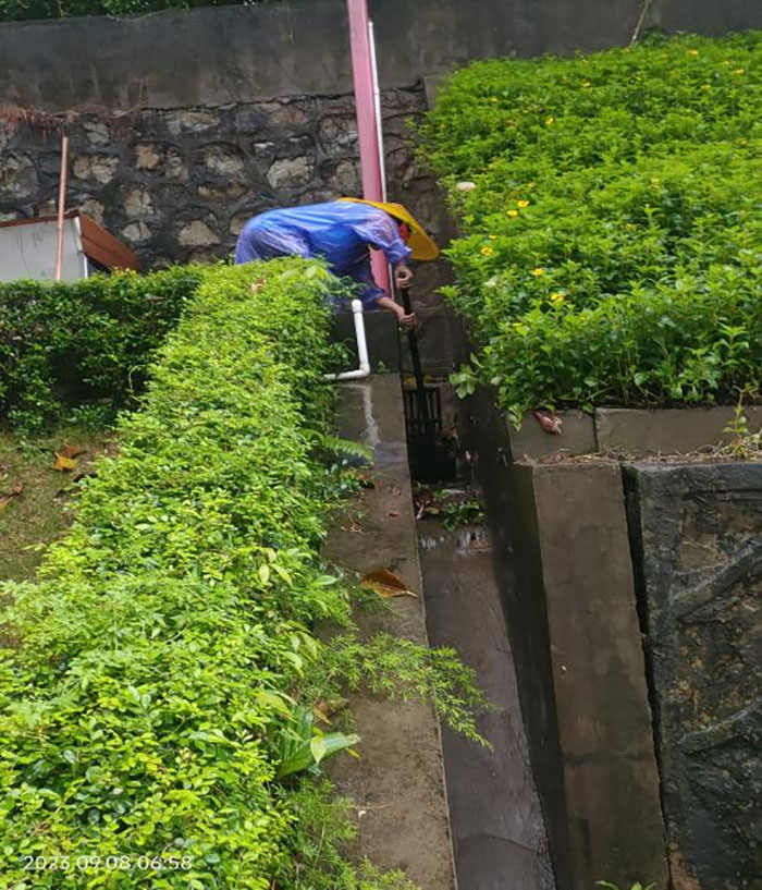 京華物業(yè)值班干部、工程部、保安人員徹夜未眠、堅守崗位。值班干部在現(xiàn)場迅速決策、高效統(tǒng)籌防汛工作;工程部爭分奪秒排查電力系統(tǒng),全力維護電力設備的正常運轉(zhuǎn),確保供電安全穩(wěn)定,也為排水設備的運作提供堅強保障;保安人員同樣承擔著繁重的排澇搶險工作,扛沙袋、清洪澇,在防汛一線奮戰(zhàn)不止、忙碌不休。