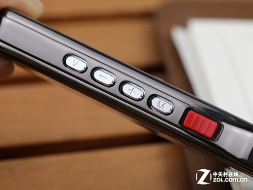 前文提到一鍵錄音是HQ-90最大的特色,接下來筆者便為大家簡單的介紹下。我們只需撥動下錄音筆側邊的紅色卡關,便可以在關機情況下實現錄音、保存等功能。這個功能可以有效的避免在盲錄時,操作失誤造成的關鍵錄音不能被記錄。