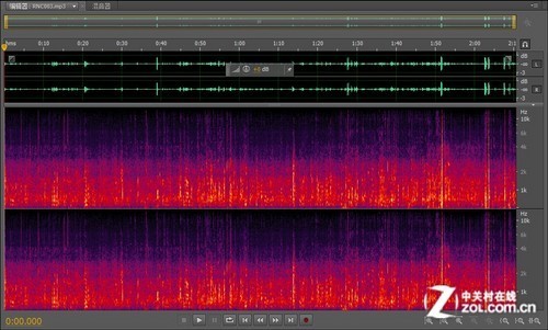 試聽錄音文件,發現京華HQ-90在錄音降噪模式下還是非常完整的還原整個環境的聲音,遠處兩位同事的交談內容也能基本清晰的聽出。從能量圖中可以看出,錄音能量還是集中分布在靠近話筒的主聲音,沒有過多的環境底噪,而音量相對較高的談話聲音,還是可以完整記錄的。