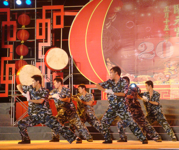 晚上7點整,隨著全場倒計時的結束,氣勢磅礴的音樂響徹整個工業城,開場舞蹈《旗鼓迎春》正式拉開了晚會的序幕。接著登臺的是由京華信息鐘宇鳴、楊陽、楊坤、魏仕帥帶來的歌曲《歡樂中國年》,兩只威風凜凜的大老虎在舞臺上不時擺出笨拙可愛的動作惹得臺下觀眾哄堂大笑。此時,京華義工們又及時地為臺下的觀眾送上一碗碗熱騰騰的湯圓。喜慶的歌聲,熱情的表演,甜蜜蜜的湯圓將大家帶入了元宵佳節歡樂祥和的氛圍。